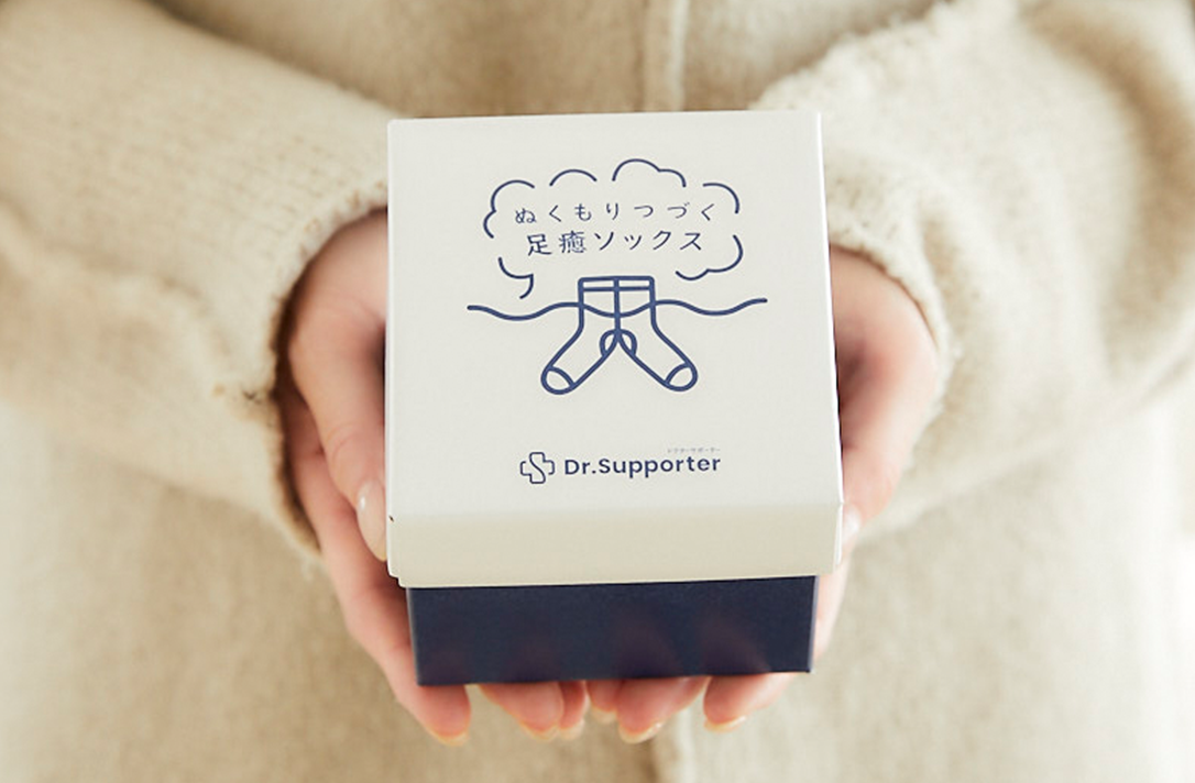 Dr.Supporterぬくもりつづく足癒ソックスは、かわいいイラスト入りのオリジナル専用ボックスでお届けします。