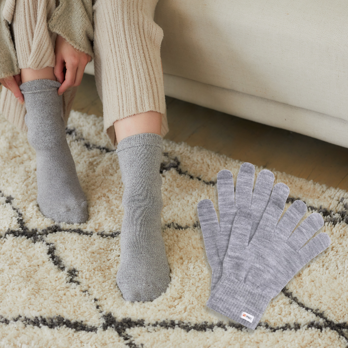 毎日の暮らしにそっと寄り添う2アイテム(Dr.Supporter ぬくもりつづく足癒ソックス&IFMC.(イフミック)オリジナル 温泉手袋)をセットにしました。