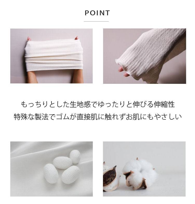 素材:綿80%、絹20%、別途ゴム糸を使用